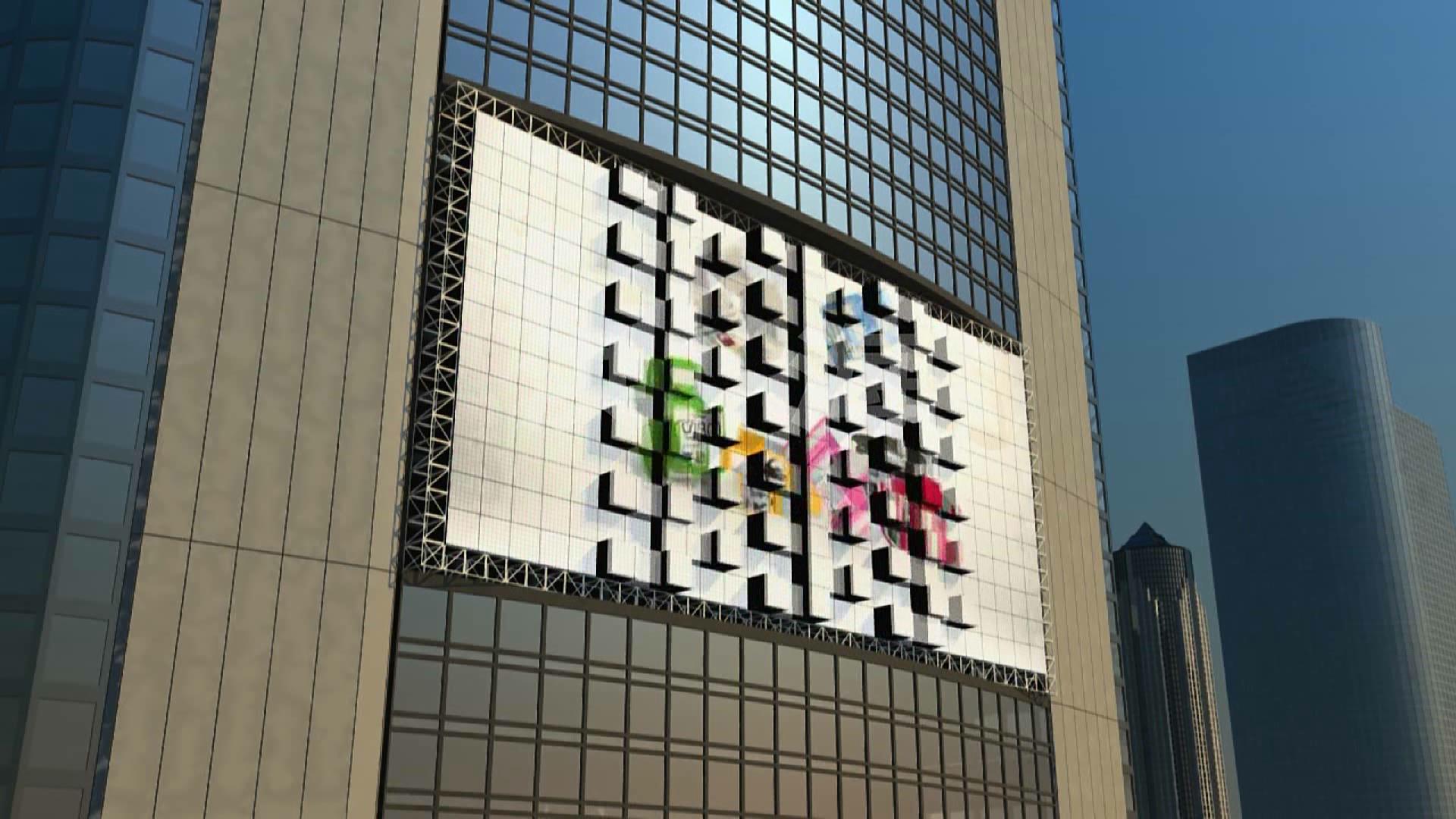洪海光電集團研發會跳舞的led顯示屏,led升降屏,將整個led全彩顯示屏分割成幾百上千個方格型子機,整個led顯示屏箱體內由一臺微型數控電機驅動,推動導桿使方柱體按照電腦編制的程序先后時差向前凸起----落下----自動換畫;每次凸起---落下一個循環都會更換一幅畫面,一般設定8-18種翻動花樣,也可以更多。節目中晶瑩剔透的箱體在地面上此起波伏。我們將這種效果運用到墻體上,樓頂、高炮,給您的城市帶來十足的動感。使人民駐足觀望,流連忘放。
