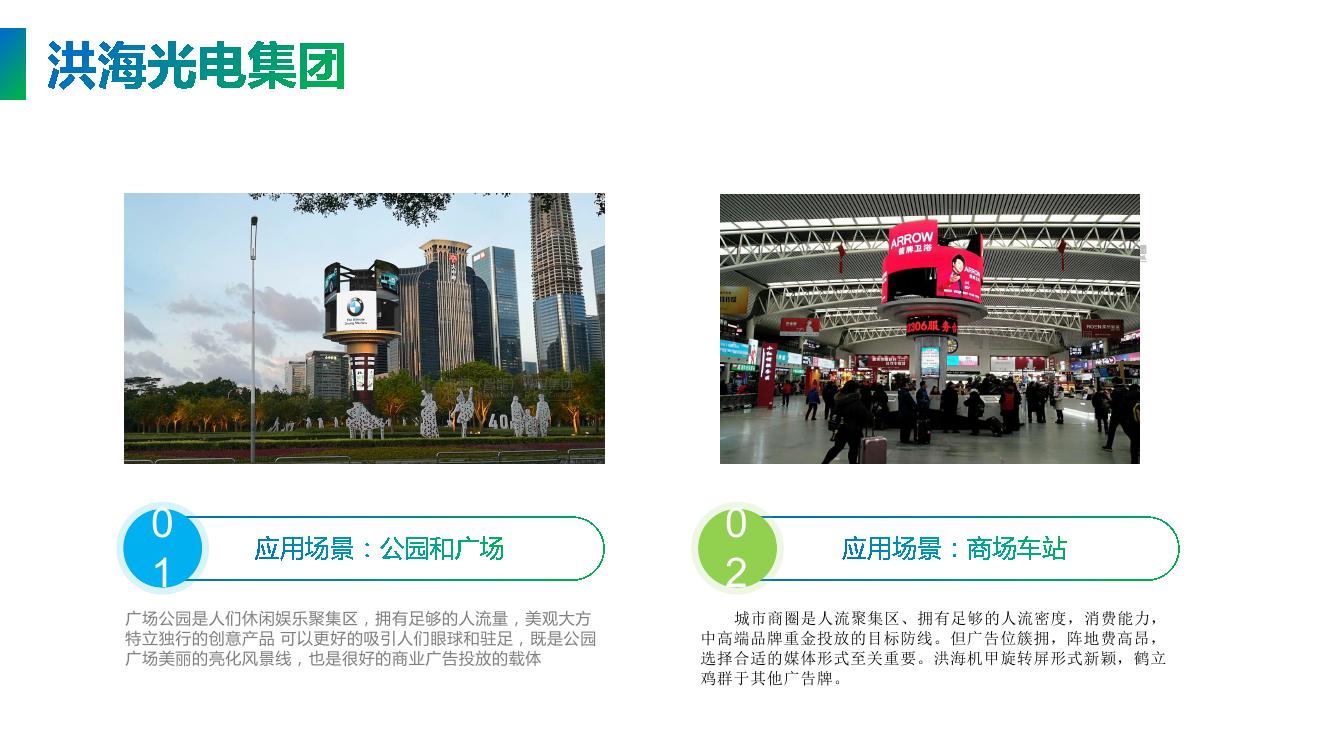 洪海光電集團有限公司 是一家專業致力于智能景觀動態LED顯示屏的研發,以智能機器人高端宣傳設備為研究方向,我們將機器人的機械運動美學和LED智能顯示相結合,創造出系列智能廣告和展示設備,實現顯示屏的旋轉升降、伸縮、變形、無線傳輸、遠程控制、人機互動等現代智能化元素,為智慧城市提供全套的城市景觀、戶外廣告、機械幕墻配套的技術服務方案。 總工程師史洪海先生獲200多項國家專利,是受聘于中國青年創業國際計劃的青年創業導師和大學產業教授,在中國智能光電行業中具有非凡的創造力和舉足輕重的地位。